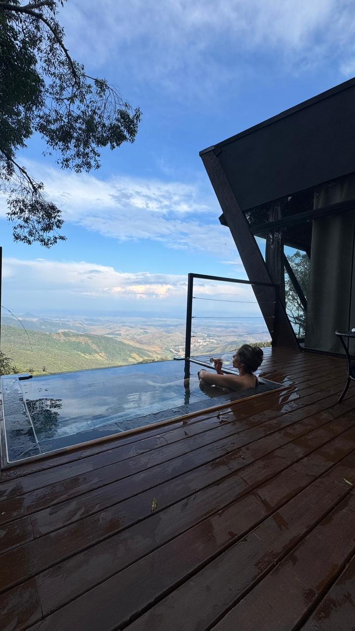 A arquitetura é um espetáculo à parte… os vidros inclinados de frente para o penhasco fazem você se sentir imersa na paisagem. A vista é de tirar o fôlego e vai mudando conforme o tempo passa. A cabana combina perfeitamente conforto e sofisticação, tudo de muita qualidade!