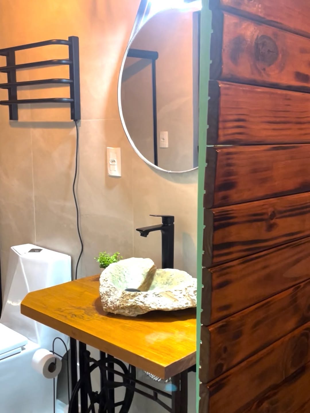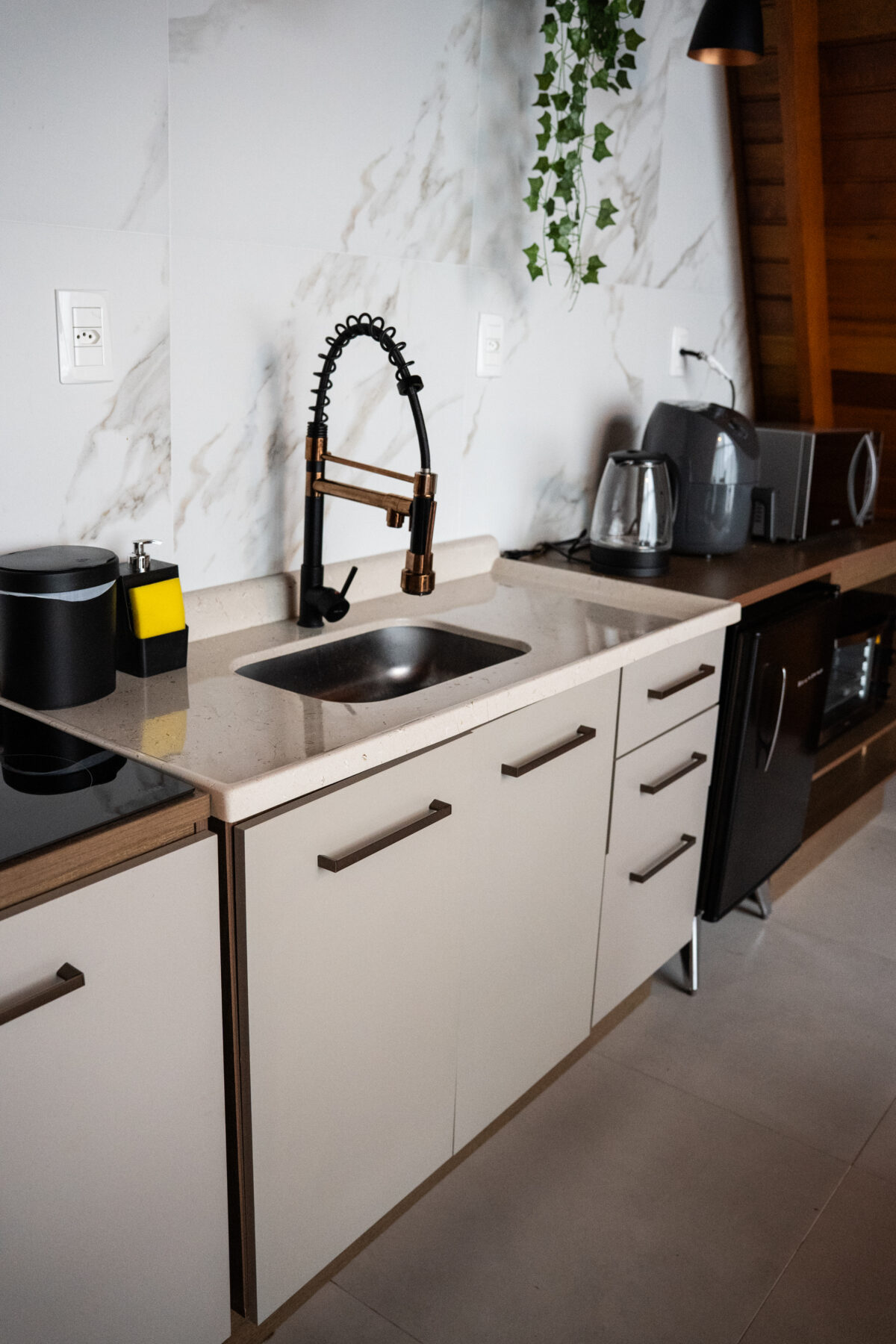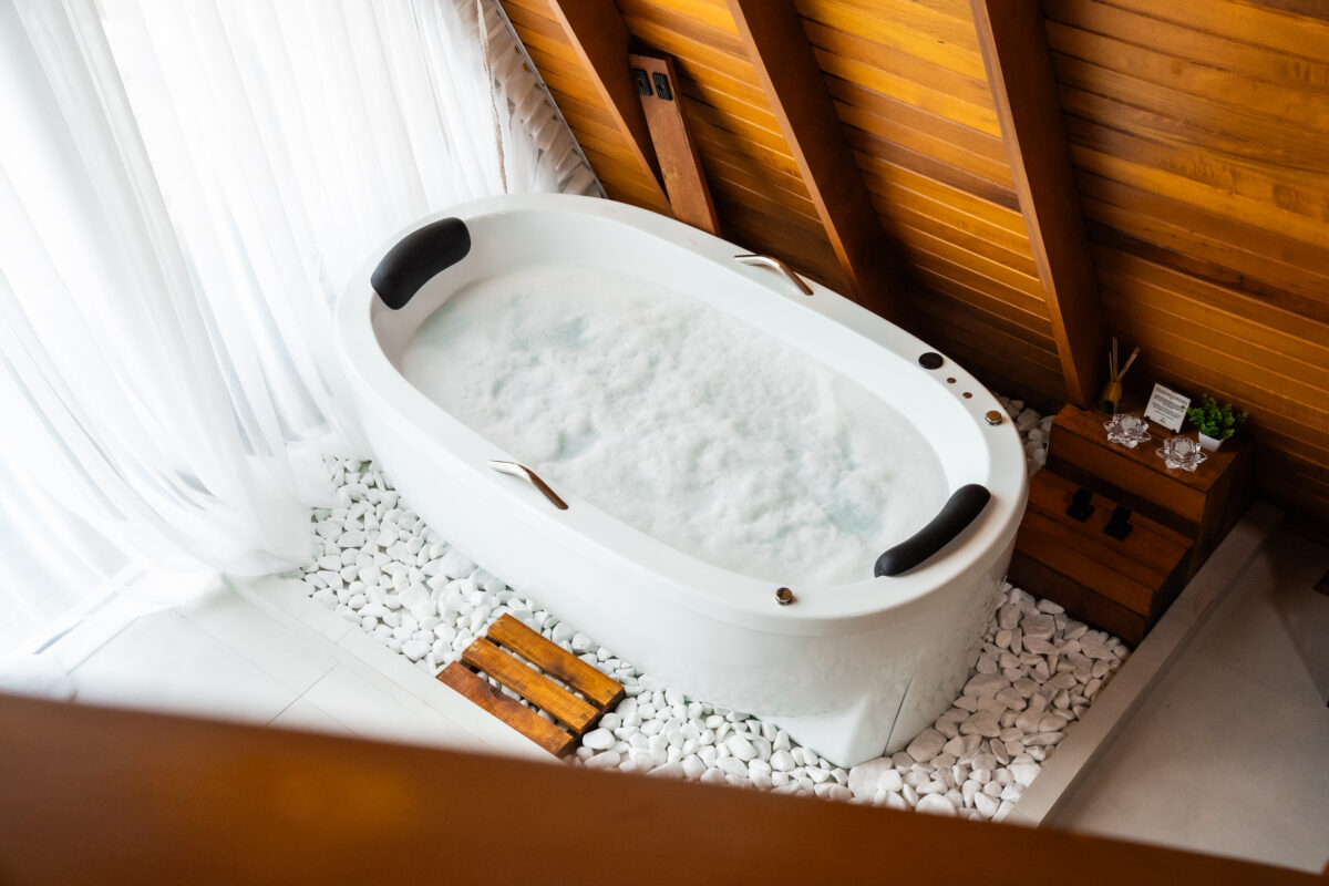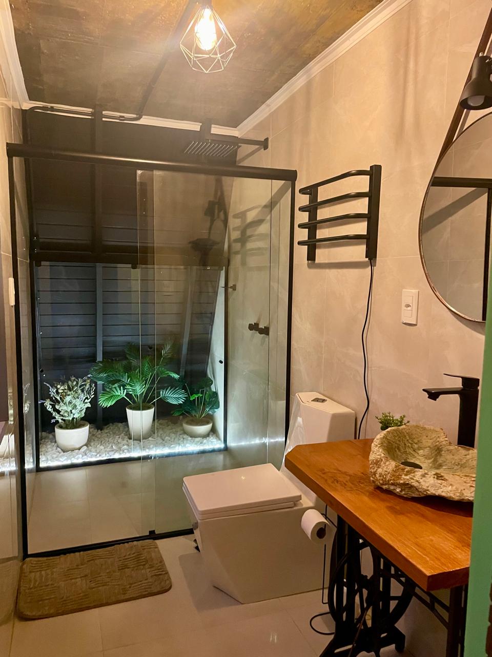 Além disso, ainda nesse andar, está um dos grandes destaques: a banheira de imersão com hidromassagem e cromoterapia, perfeita para momentos de autocuidado e relaxamento. O banheiro conta com roupões macios, toalheiros elétricos, chuveiro aquecido e todos os amenities necessários para uma estadia acolhedora.