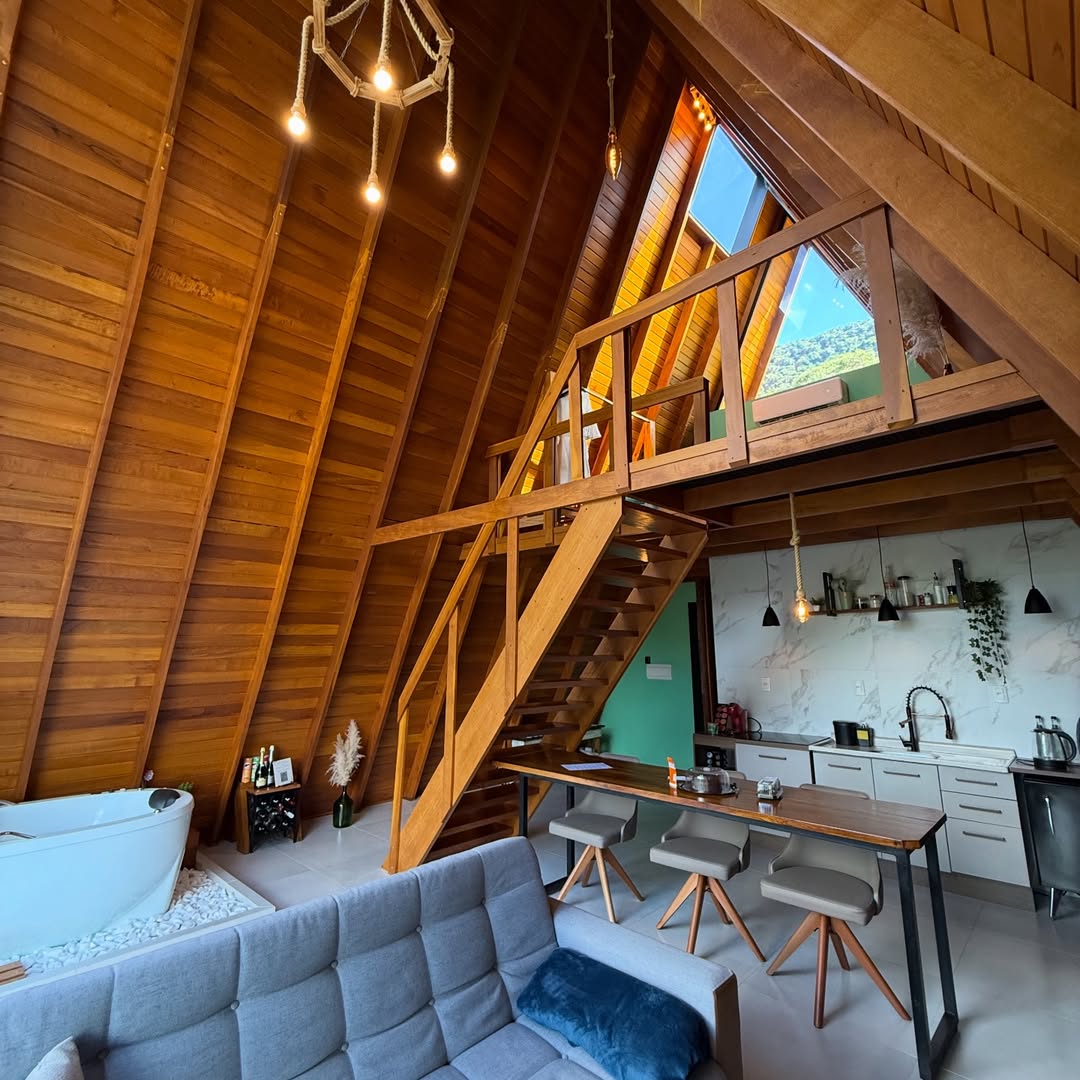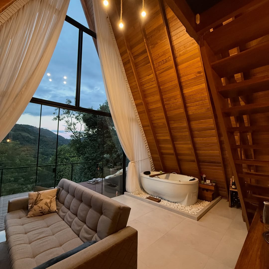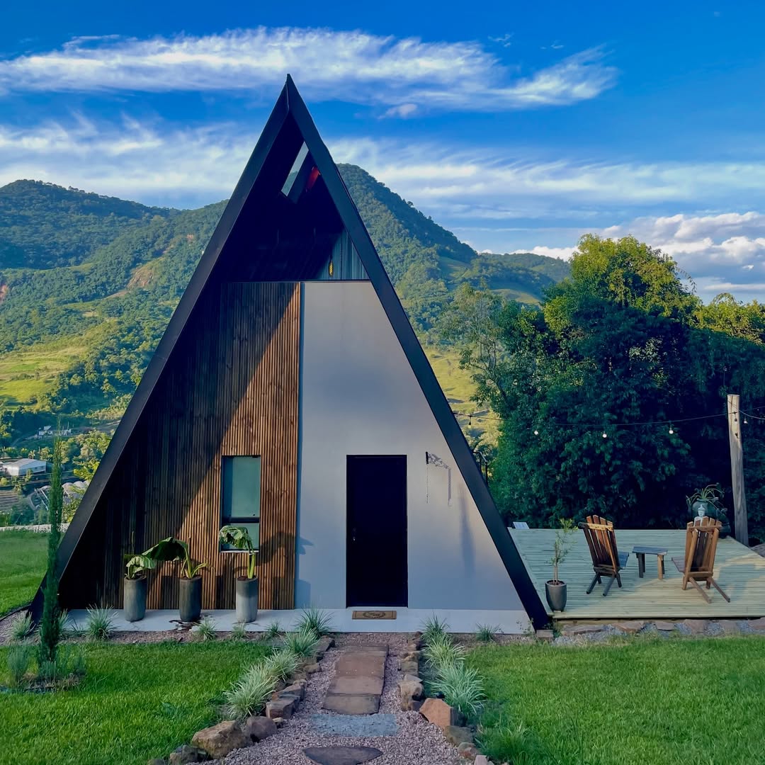 A Cabana A-Frame Gaúcha é um verdadeiro convite para desacelerar. Localizada entre as montanhas da Serra Gaúcha, em Vale Real, RS, é o refúgio ideal para quem deseja viver um momento único em meio à natureza.