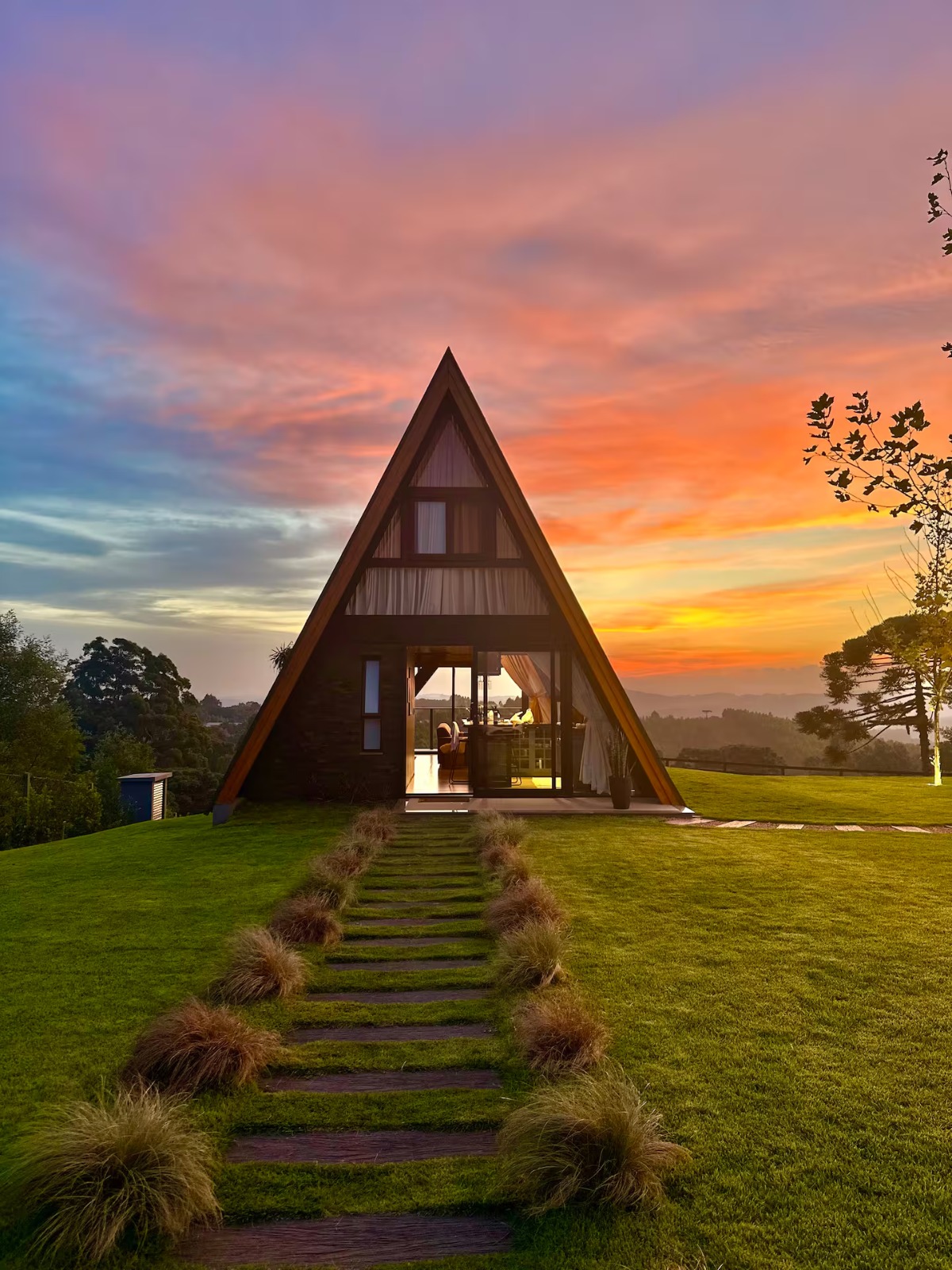 O terreno é habitado por ovelhas, proporcionando uma experiência ainda mais especial em contato com a natureza.