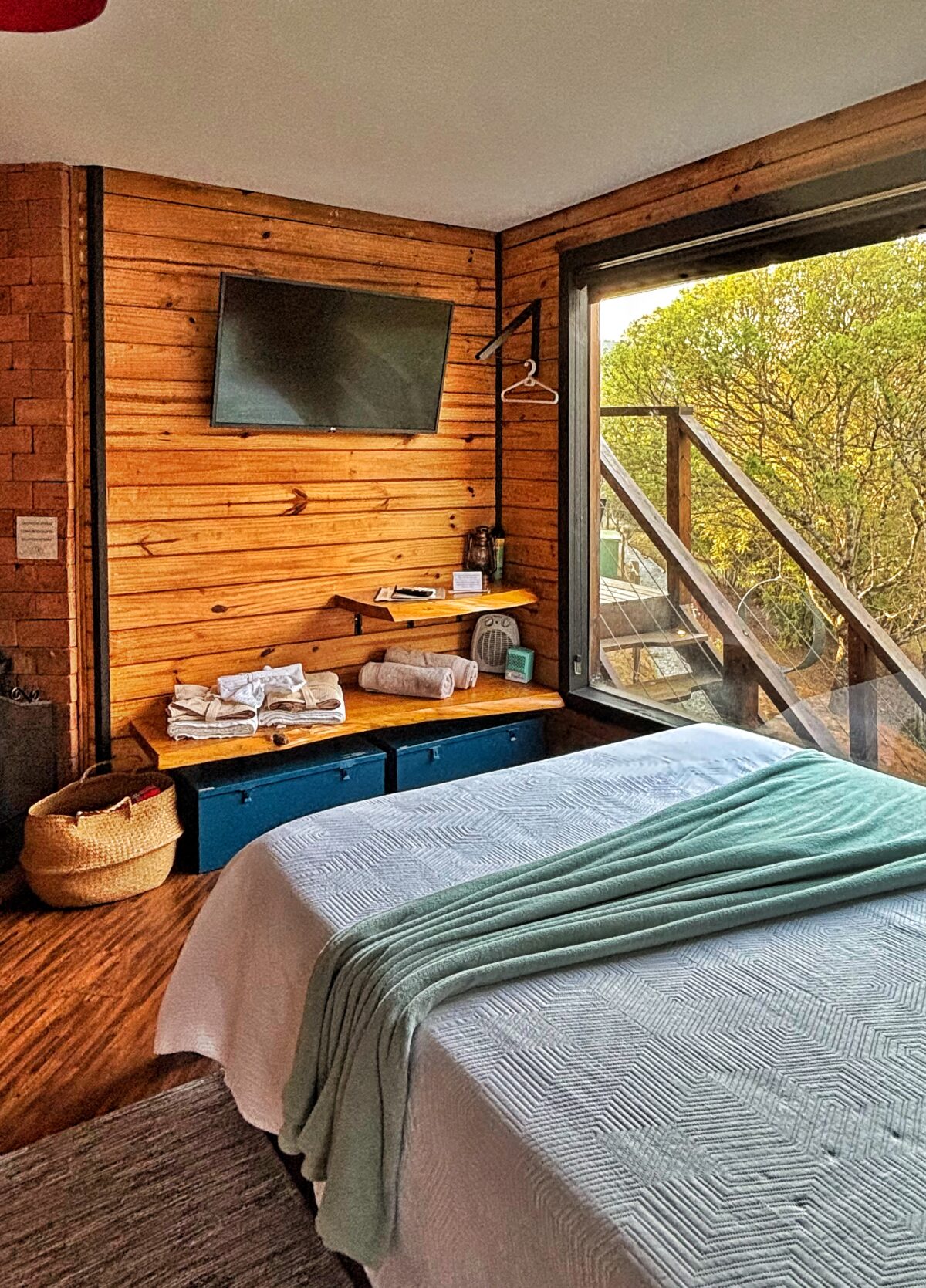 A cabana foi projetada e equipada para que você se sinta em casa, você poderá contar com: fogueira, churrasqueira, lareira a lenha, ar condicionado, TV smart, utensílios de cozinha e secador de cabelo. O quarto possui uma cama de casal tamanho Queen, e além disso, você pode aproveitar a hidromassagem com ducha externa, enquanto desfruta da incrível vista da cabana!