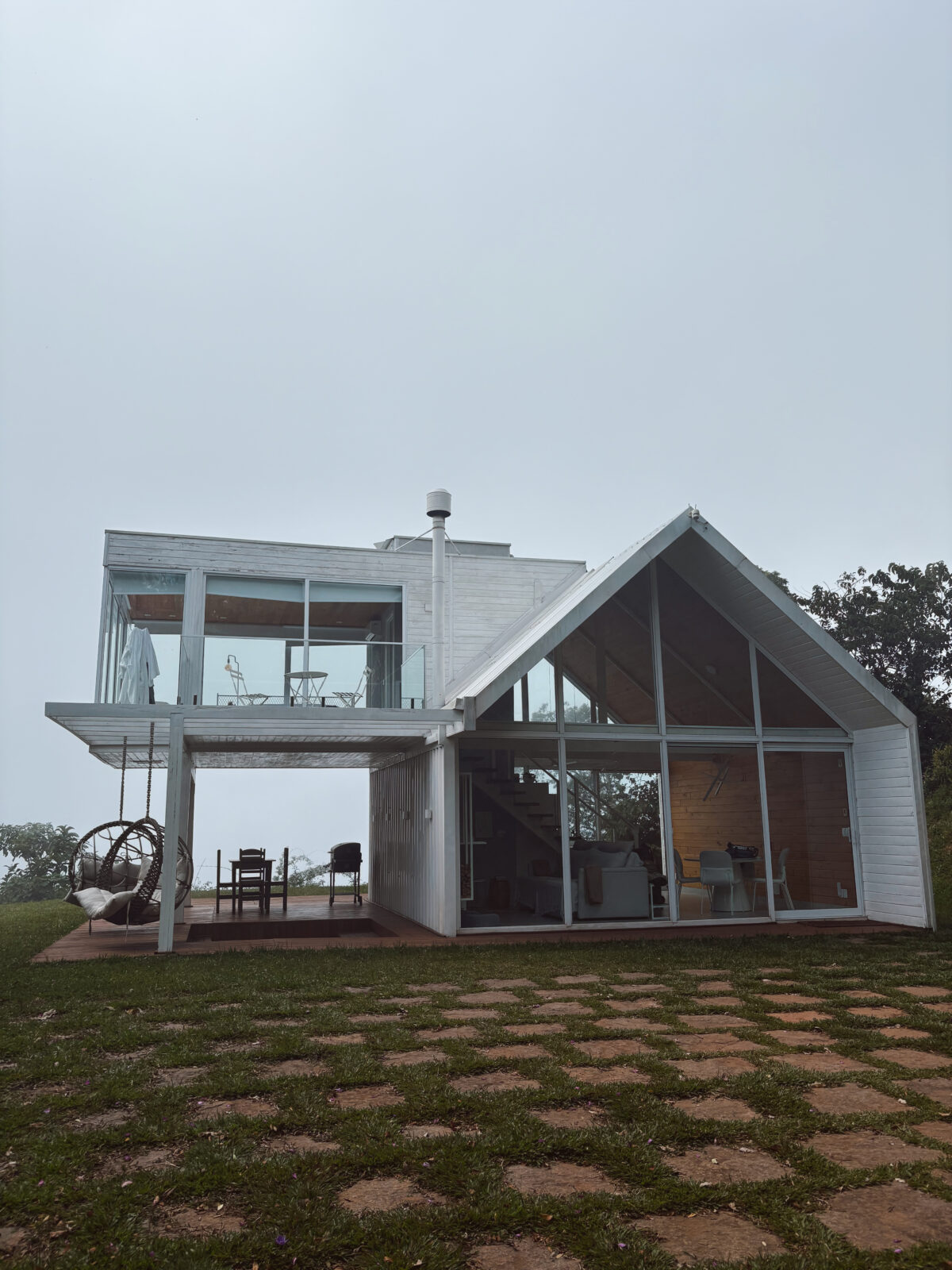 Dentro dela, mantas no sofá, uma orquídea na mesa, o manjericão na cozinha. No ar, o perfume espraiado, para dar as boas-vindas a quem chega. A cama branquinha, arrumada com carinho. O banho com água quentinha na banheira, com vista para as estrelas. E um sachê de cotonetes no banheiro, deixados por alguém que sabe que a gente sempre esquece de levar cotonetes na viagem! E essas coisinhas põem na gente uma alegria simples, como de uma criança. Ao lado do portão, a trilha que vai dar no Balanço do Infinito, bem pertinho do céu. Descendo a estrada, as ruínas de um antigo sanatório (Seo Rubens, seus cães e cabras vêm contar a história e mostrar o retrato de como era ali). E no último dia, um presente: acordar