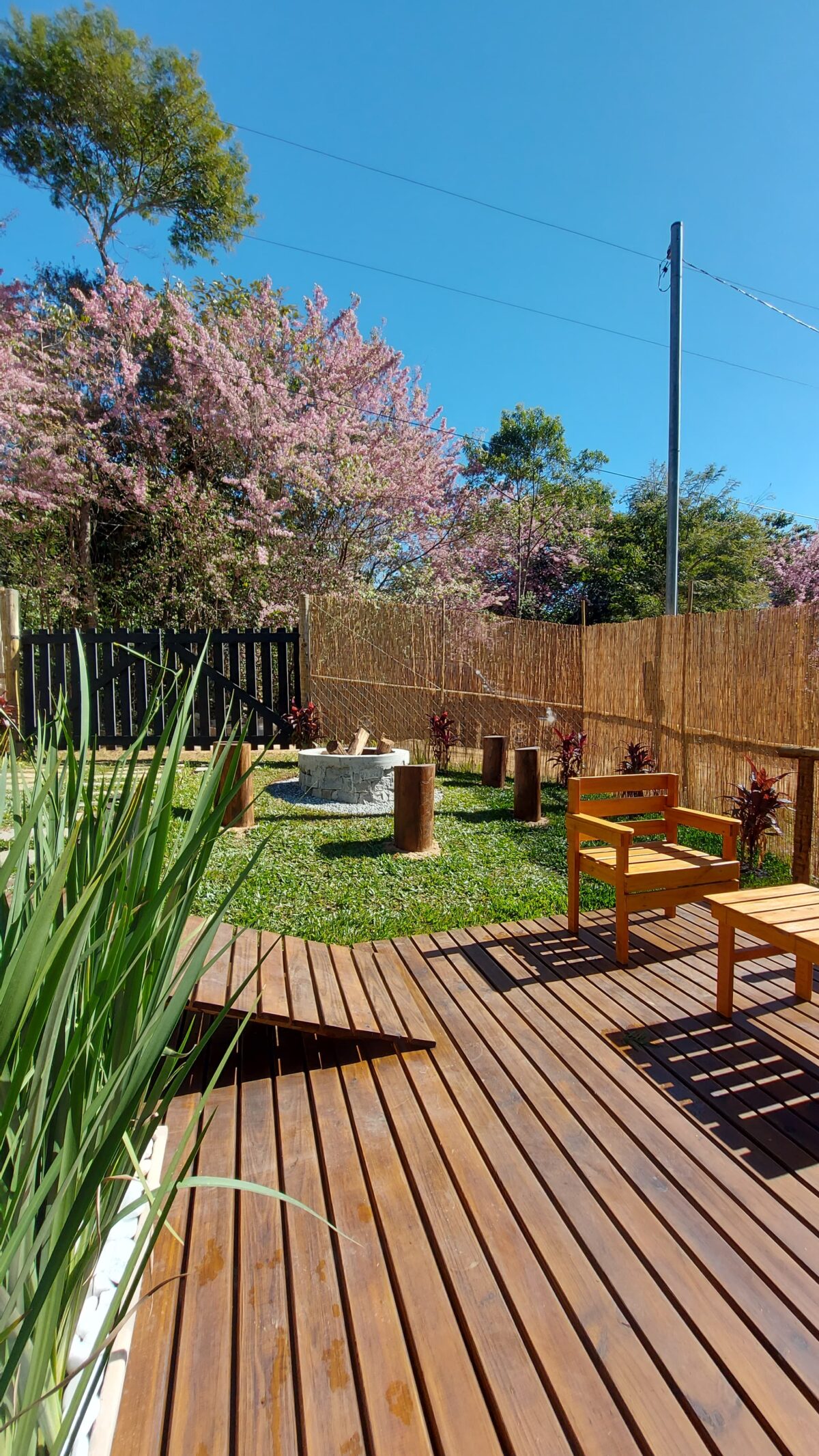 Na área externa, o destaque fica por conta da jacuzzi com hidromassagem, perfeita para momentos relaxantes. O espaço ainda conta com ducha externa, churrasqueira, um amplo gramado para atividades ao ar livre e um firepit para aproveitar momentos de fogueiras. Tudo isso cercado pelo verde da mata.