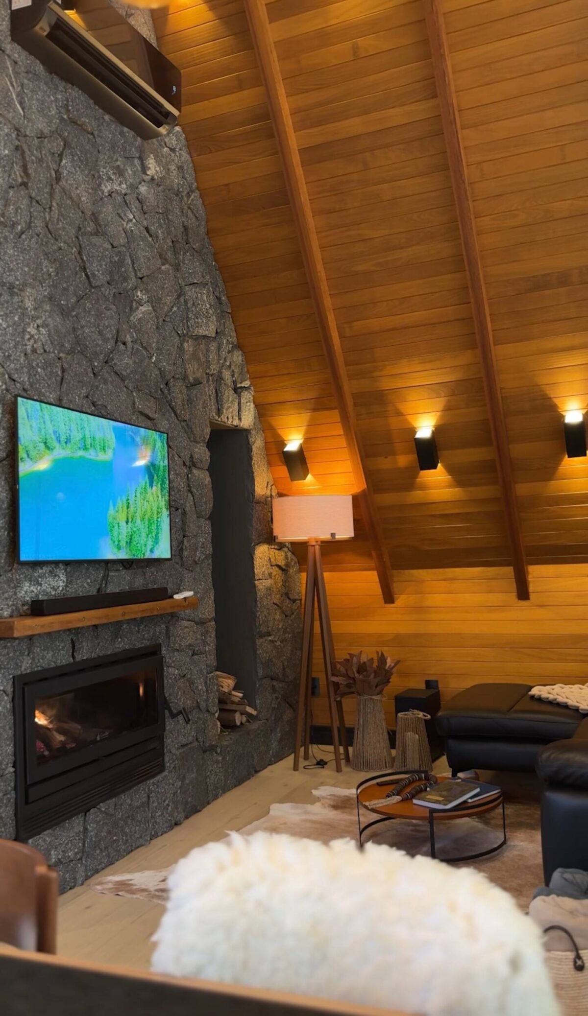 Apesar de estar localizado em meio a natureza a Cabana conta com alguns itens modernos e tecnológicos, como automação, Alexa, smart glass, piso aquecido, entre outros.