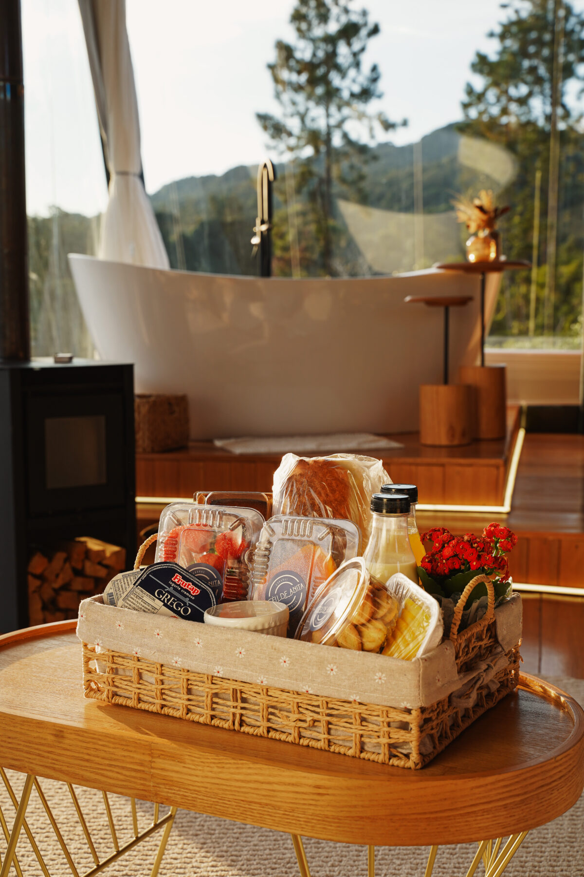 • Para deixar sua estadia ainda mais especial, há a opção de cesta de café da manhã. Adicione em ”serviços extras”.