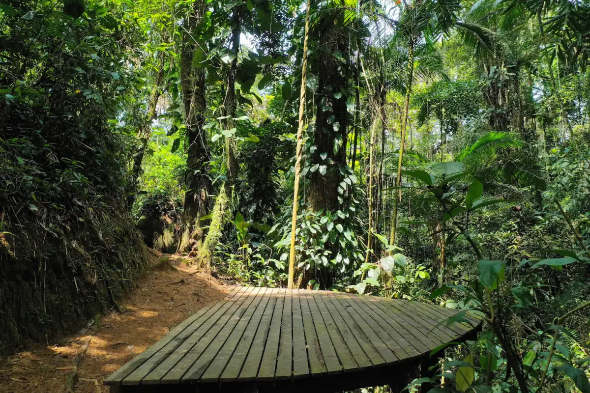 A Cabana Suçuarana é um refúgio em meio a mais de 700 mil metros quadrados de área verde preservada. Imersa na Mata Atlântica no litoral paulista, perfeita para dias de descanso e conexão com a natureza e o verde ao redor.