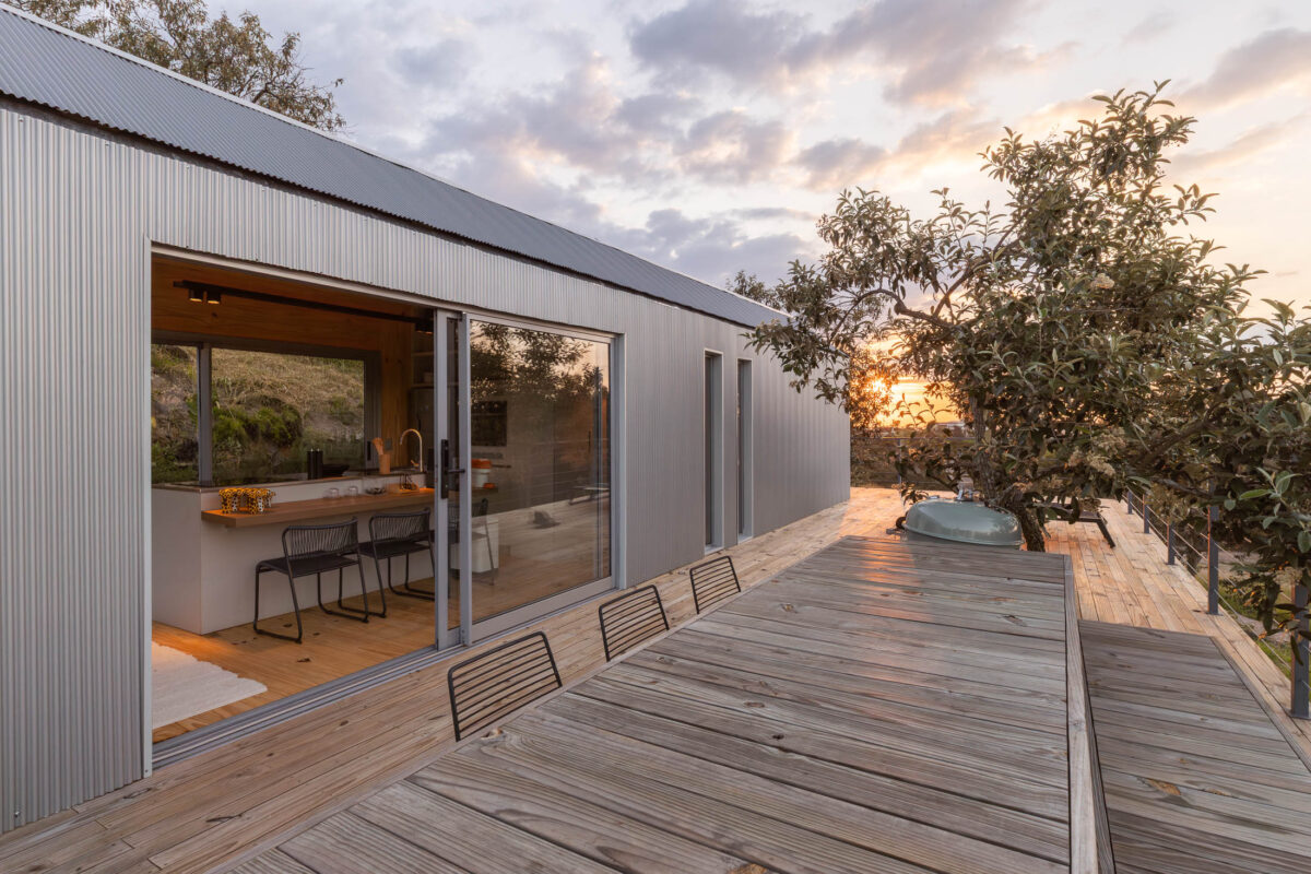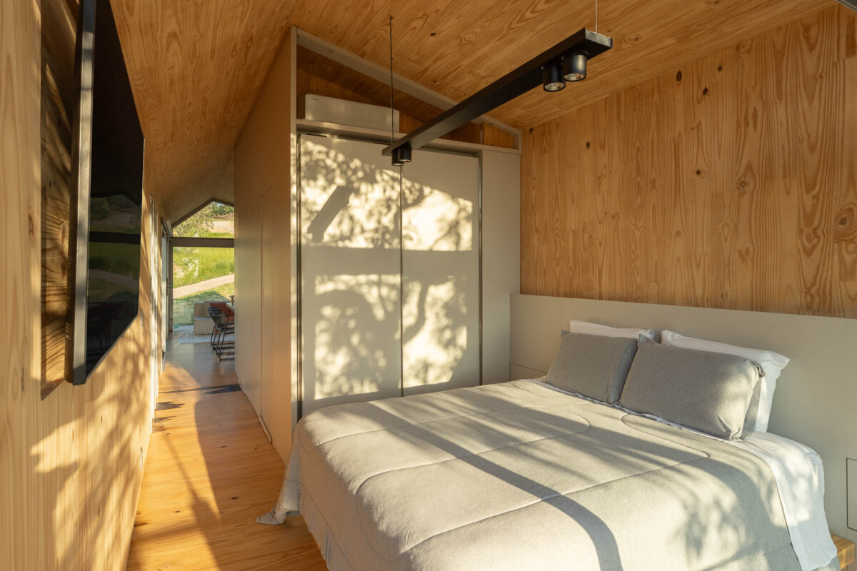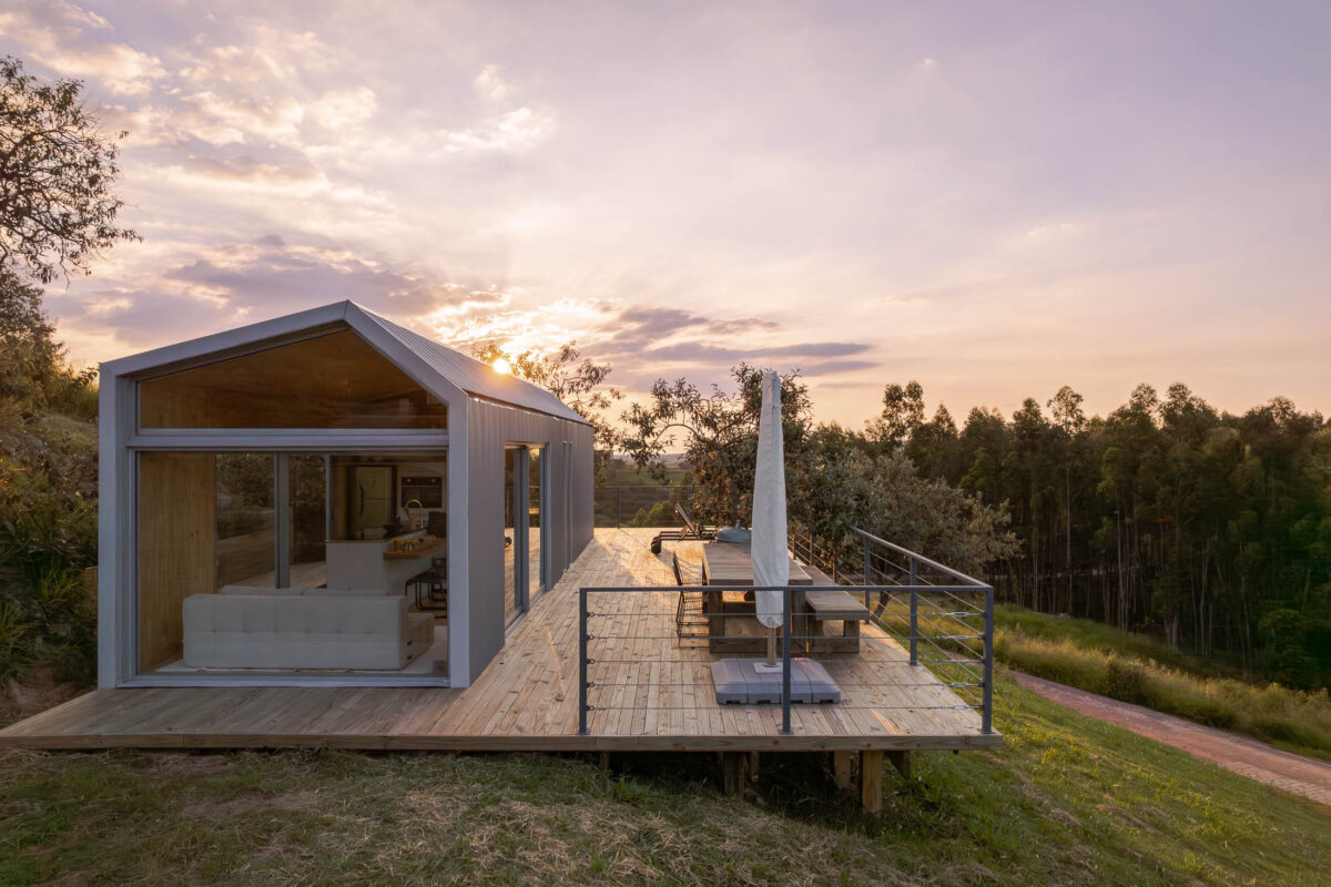 Na área externa, deck com mesa e cadeiras para refeições ao ar livre, churrasqueira, espreguiçadeiras e uma pequena horta. Há também um espaço de firepit para momentos de fogueira. Além disso, uma área de bem-estar com banheira de gelo e sauna, ideal para quem busca aproveitar uma experiência sensorial em meio à natureza.