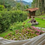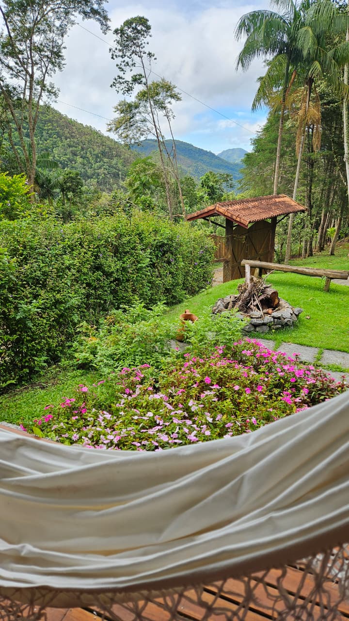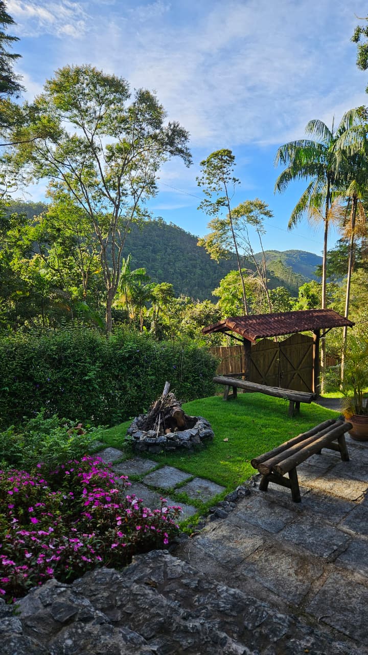 Para completar a experiência, a área externa é um verdadeiro paraíso para o lazer e o relaxamento. Com churrasqueira, mesa e cadeiras para refeições ao ar livre, redes de balanço, espreguiçadeiras, ducha e além disso, um amplo ofurô para momentos de descanso. Tudo isso cercado pela mata ao redor, enquanto houve o barulho da cachoeira, onde uma pequena trilha dará caminho para uma incrível experiência.