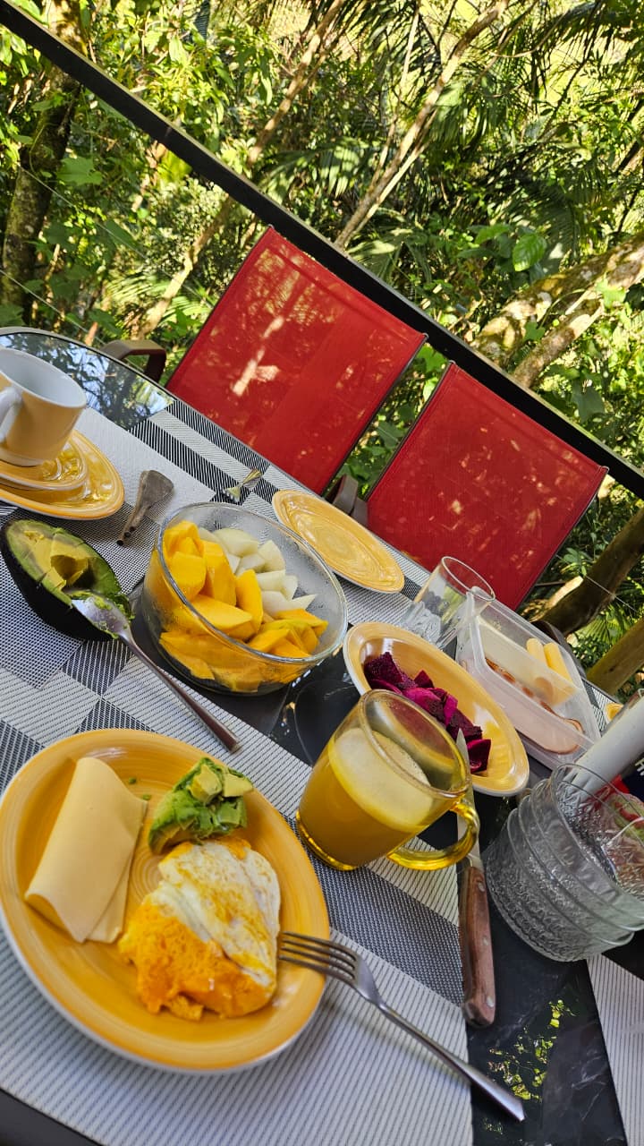 maio 7, 2025 at 9:30 amA casa é exatamente como você vê nas fotos, muito confortável e espaçosa, com tudo o que você precisa para se desconectar e passar alguns dias maravilhosos. utensílios e eletrodomésticos suficientes para cozinhar, bem como limpeza de toda a casa, com camas muito confortáveis e janelas grandes para apreciar a vista. O design tanto da estrutura quanto da decoração são perfeitos, sentimos apenas um cheiro estranho dentro da casa, como de um lugar que fica fechado por muito tempo, mas fora isso tudo é perfeito, o jardim é lindo e muito bem cuidado, a descida para o rio e a vista da cachoeira do quintal são um grande diferencial.