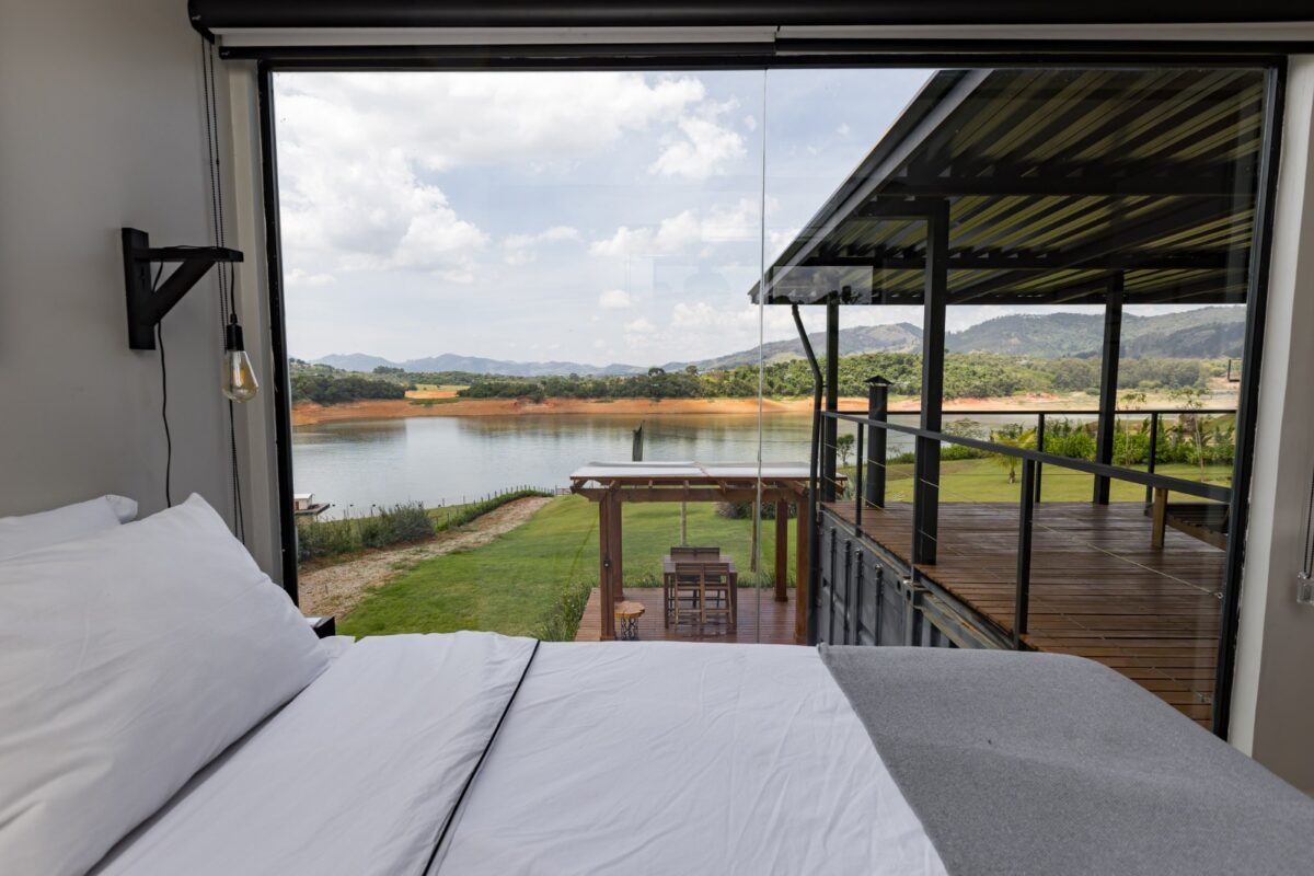 A Casa Container na Represa é o refúgio perfeito para quem busca dias de descanso em meio à natureza. Um espaço único, integrado ao verde e com toda a tranquilidade de um terreno de 5 mil m², ideal para relaxar e se reconectar.