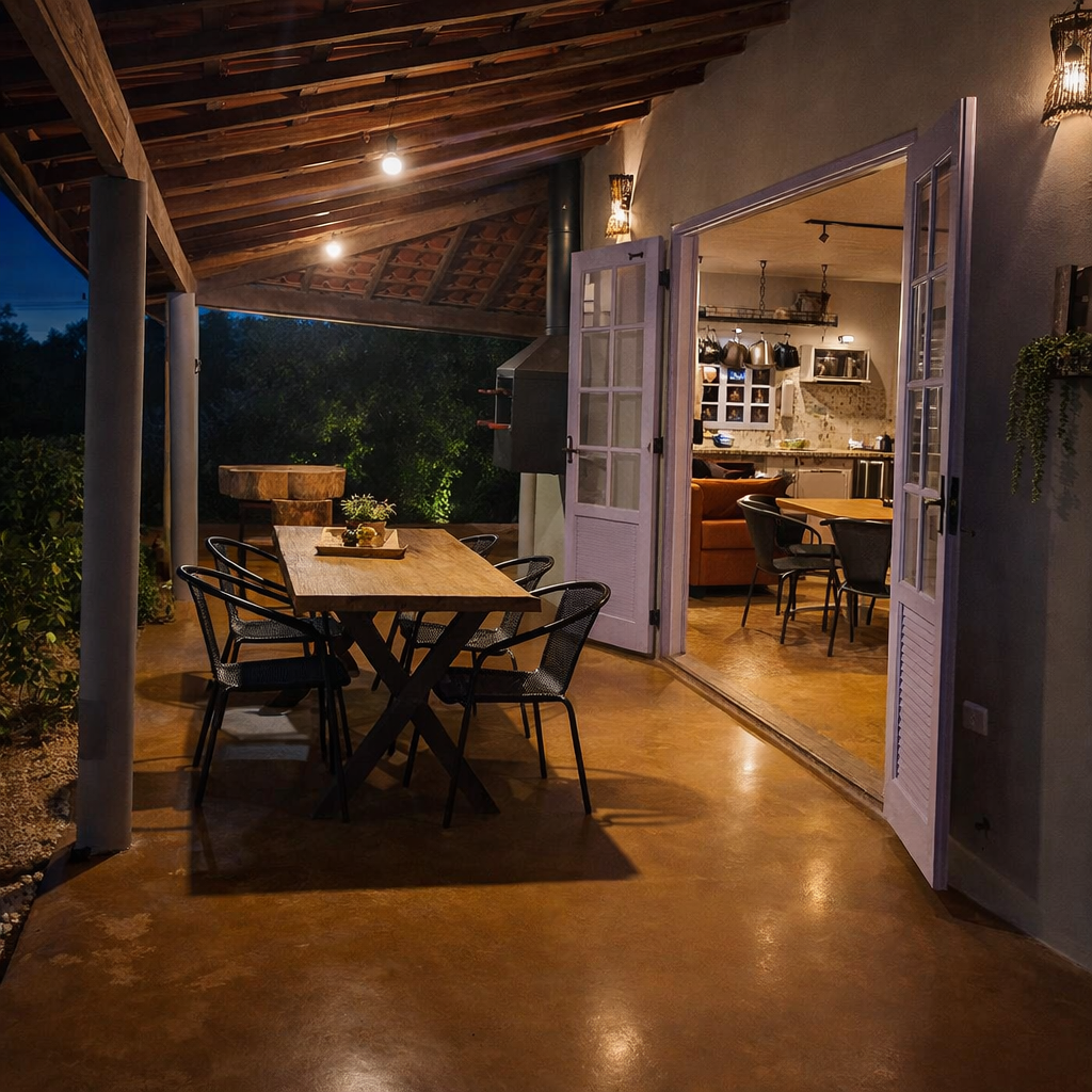 A área externa é um verdadeiro convite para aproveitar, há um amplo deck com mesa e cadeiras para refeições ao ar livre, espreguiçadeiras, redes de balanço e churrasqueira. Além disso, o terreno conta ainda com amplo gramado para atividades, firepit para momentos de fogueira, um jardim encantador e, para tornar a experiência ainda mais especial, riacho e cachoeira dentro da propriedade.
