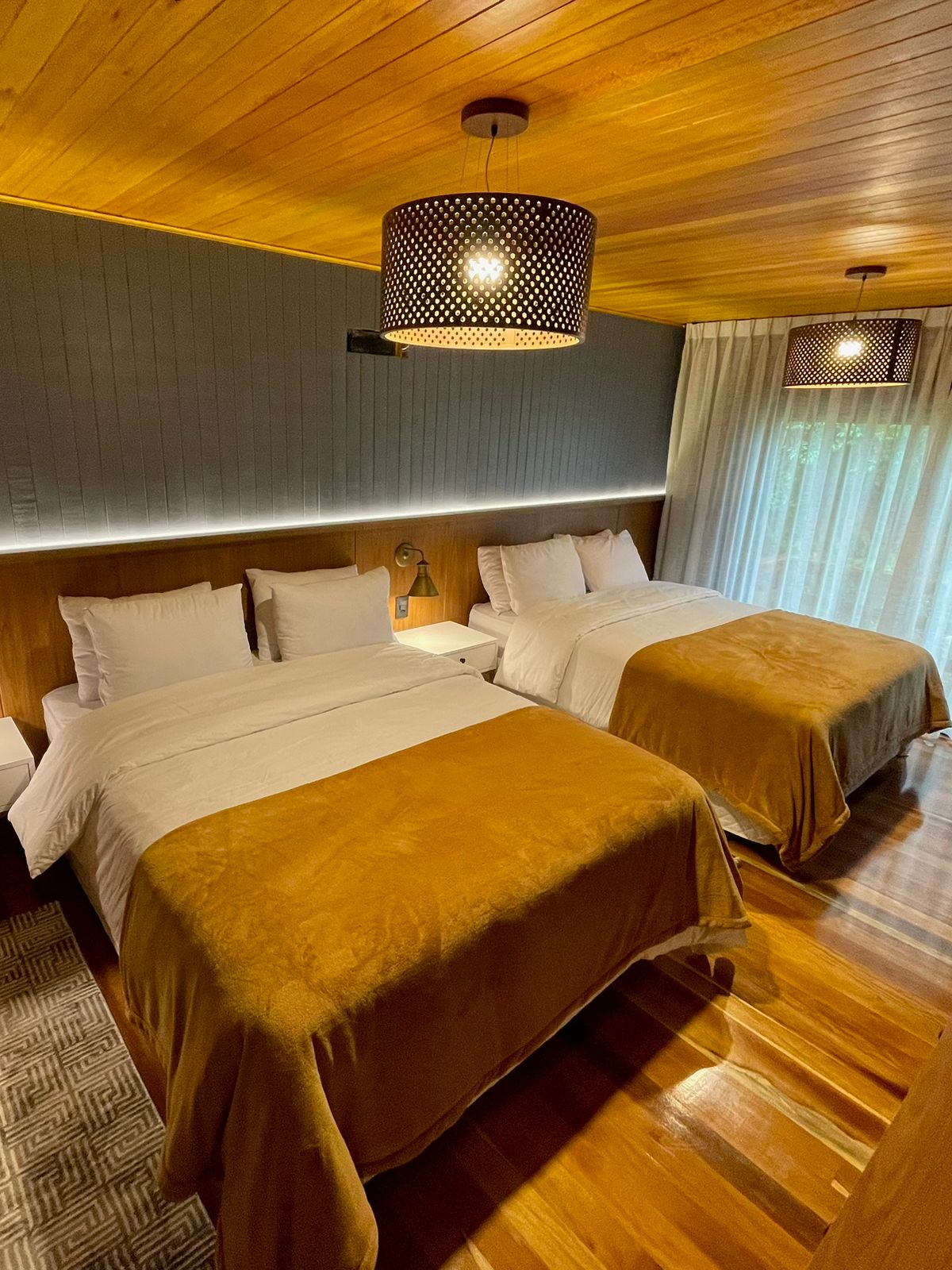 São três suítes confortáveis , a primeira com cama uma queen, a segunda com uma cama queen e um beliche, e a terceira com duas camas queens. Todas suítes equipadas com enxoval completo de alta qualidade, ar-condicionado, Smart TV, cortinas blackout e espaço para itens pessoais. Além disso, os banheiros são completos com ducha quente, secador, amenidades e toalhas macias.