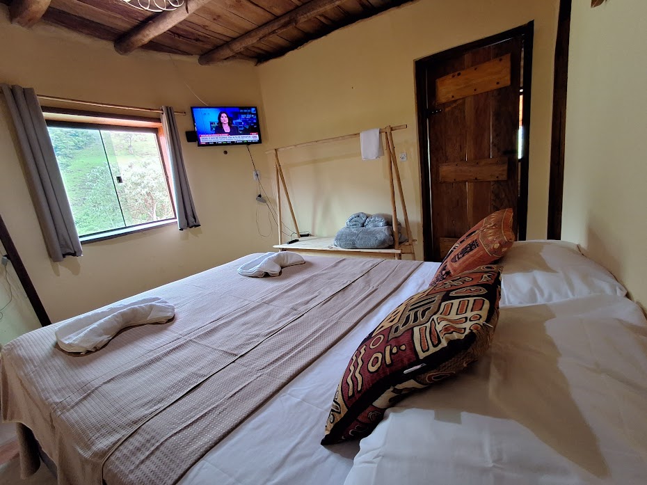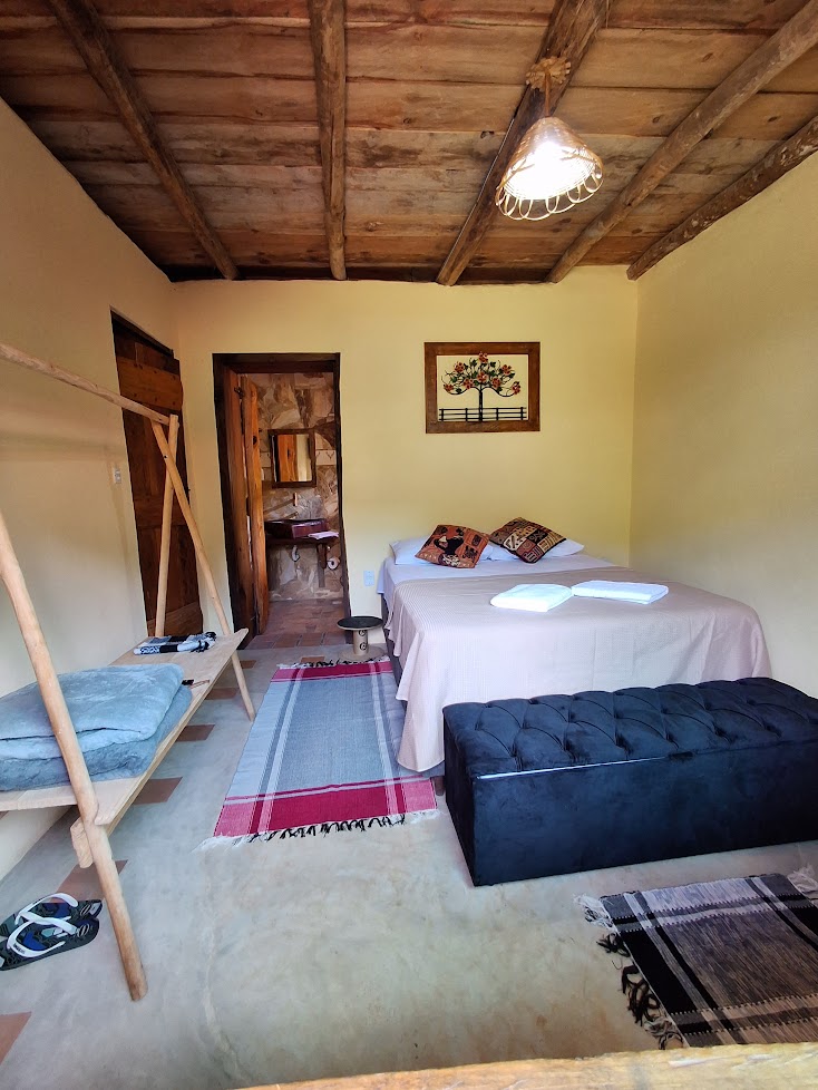 - Quarto 01: Suíte com uma cama de casal.
