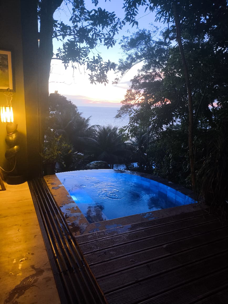 O destaque fica para a área externa, que conta com piscina aquecida privativa, espreguiçadeiras, churrasqueira e uma vista incrível para o mar, tudo cercado pela mata, proporcionando momentos únicos de descanso, privacidade e contemplação em meio à natureza.