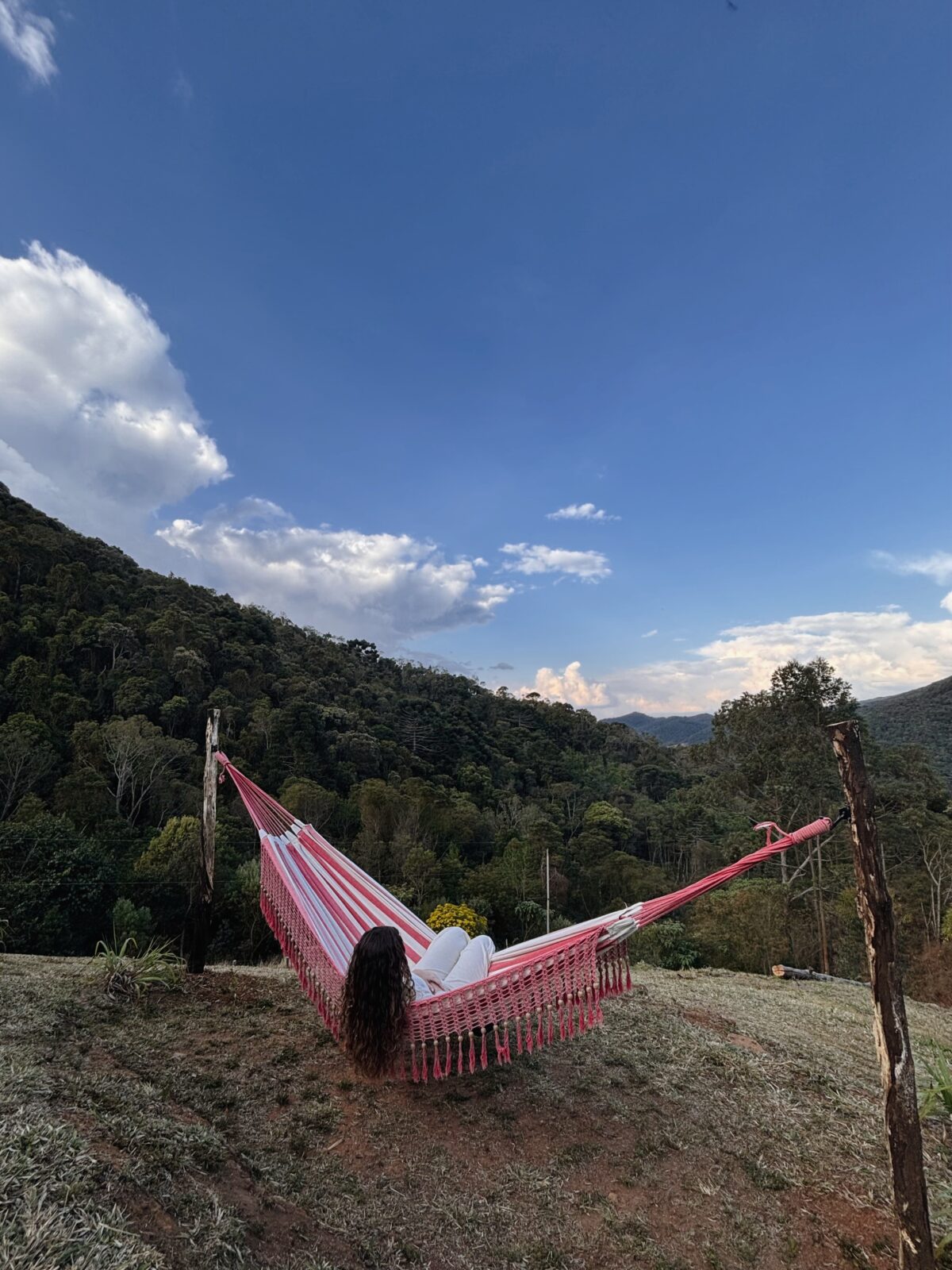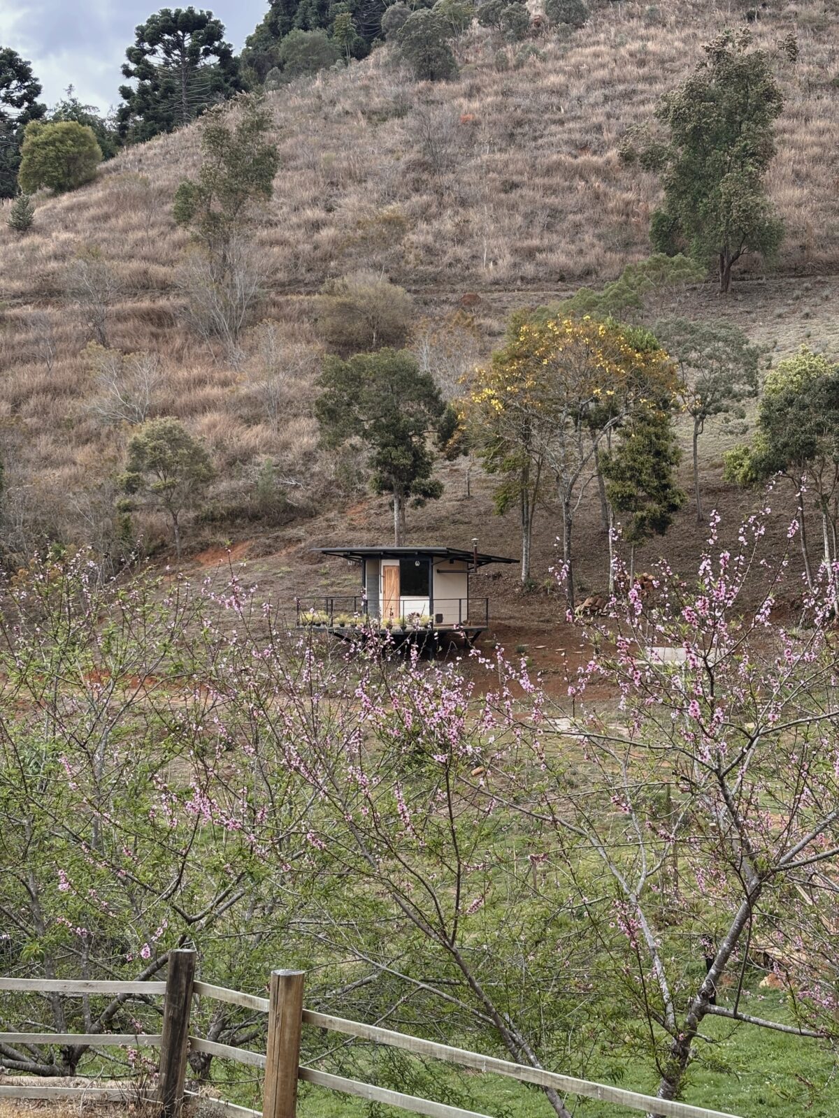 A propriedade oferece mais de 10 hectares de área externa, com espaço para caminhadas, trilhas até mirantes, momentos de contemplação e práticas ao ar livre. A poucos passos do chalé, há uma sauna e um restaurante no próprio terreno que funciona aos finais de semana e serve o café da manhã em um ambiente acolhedor, rodeado pela natureza.