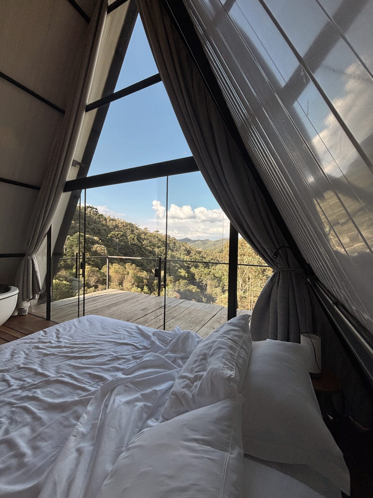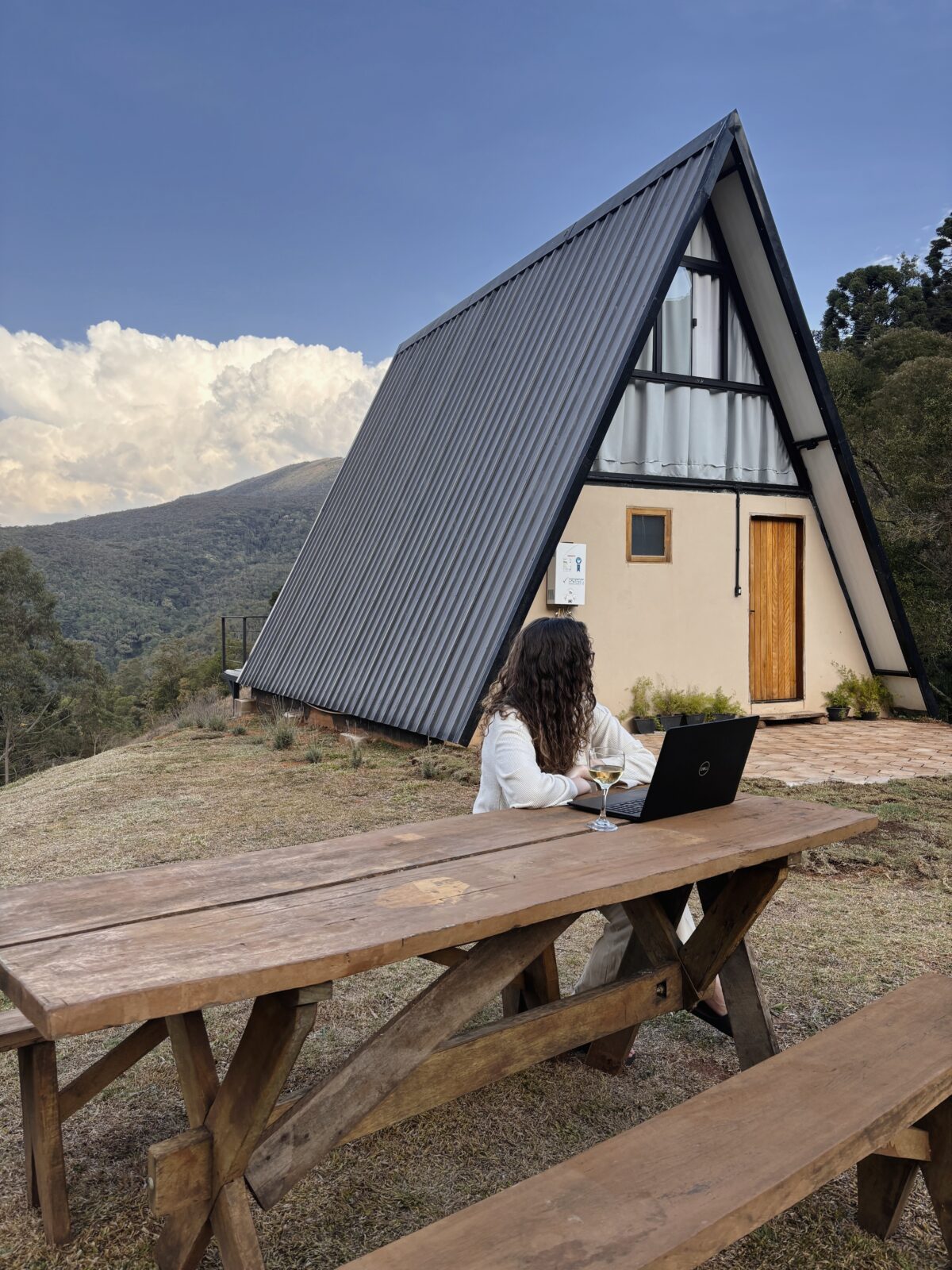 O Chalé A-frame Aconchego na Mata une o charme da arquitetura em “A” com o sossego de estar cercado pela natureza. Com vista para as montanhas e um interior acolhedor, o lugar que convida a desacelerar, curtir cada detalhe e aproveitar momentos de descanso em meio ao verde.