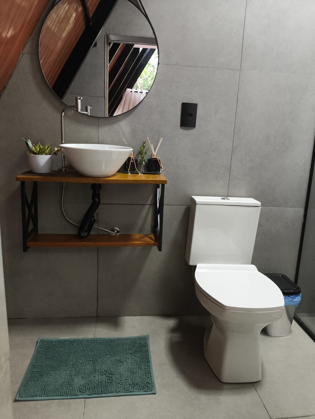 Além disso, No mezanino, o quarto principal com cama queen size e enxoval completo. O banheiro oferece ducha de água quente, além de toalhas e amenidades para uma estadia confortável.