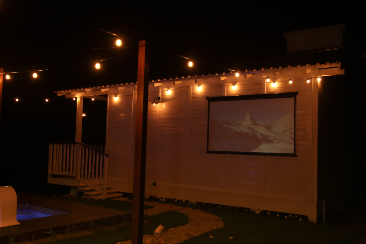 Além disso, um gramado amplo, com espaço de firepit para fogueiras e um retroprojetor para momentos de cinema. Tudo à beira do lago, que é o grande protagonista da experiência de imersão na natureza.