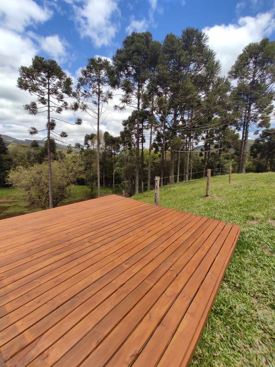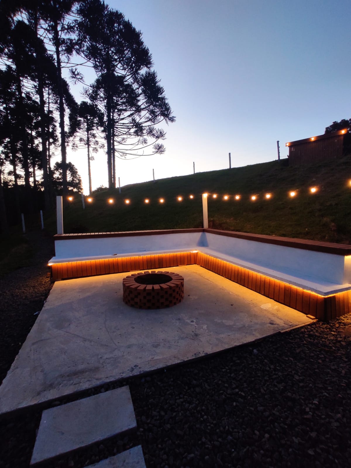 Além disso, na área externa, um amplo deck com vista para o lago e para o gramado, onde há um espaço de firepit para noites de fogueiras. Os hóspedes ainda têm acesso exclusivo a uma área de 25 mil m² com rio, trilhas e balanço, um verdadeiro refúgio natural na Serra Catarinense.