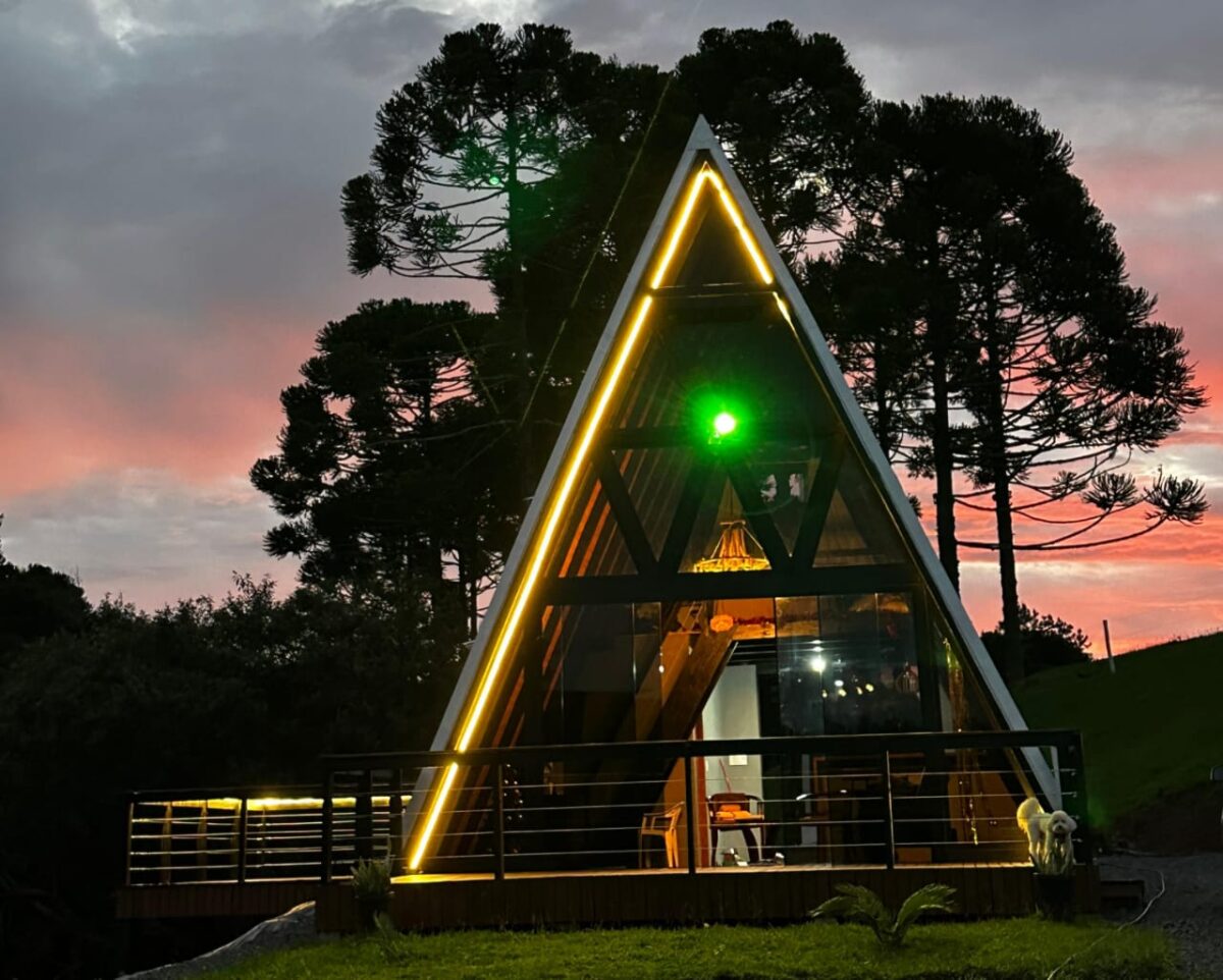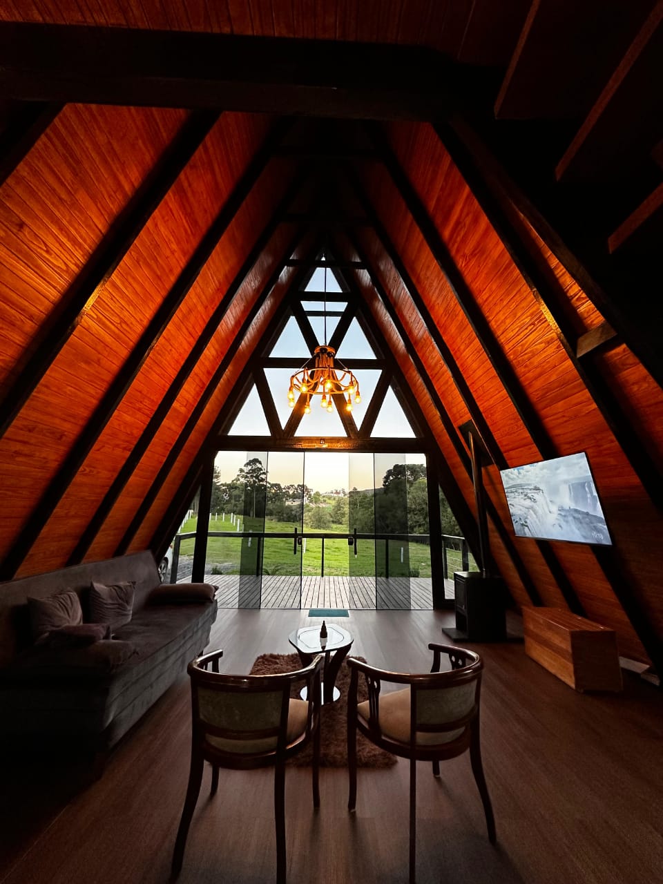 O Chalé Montem Verde é um refúgio romântico na Serra Catarinense, entre Lages e Urubici, perfeito para quem deseja desacelerar e viver dias de conexão a dois. Com arquitetura A-frame e cercado por muito verde, o chalé convida ao descanso e ao silêncio da natureza.
