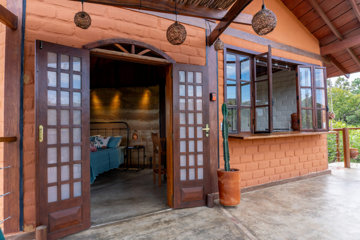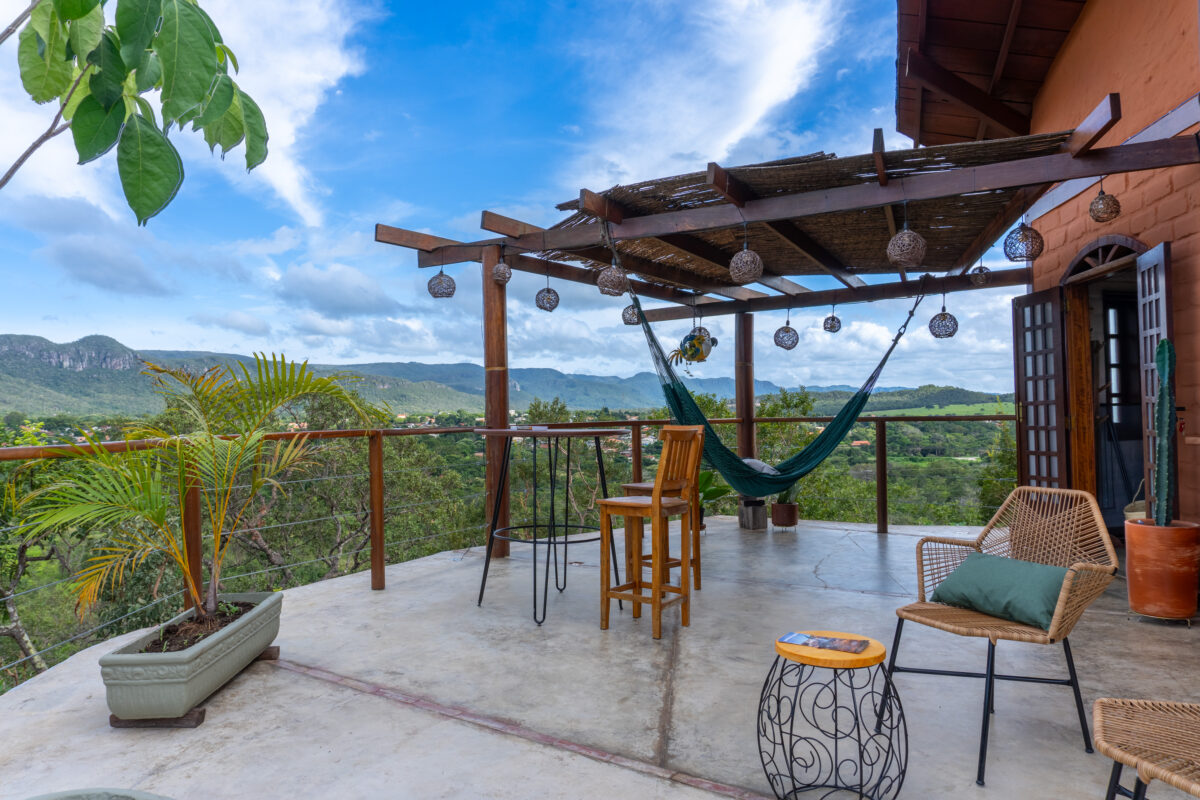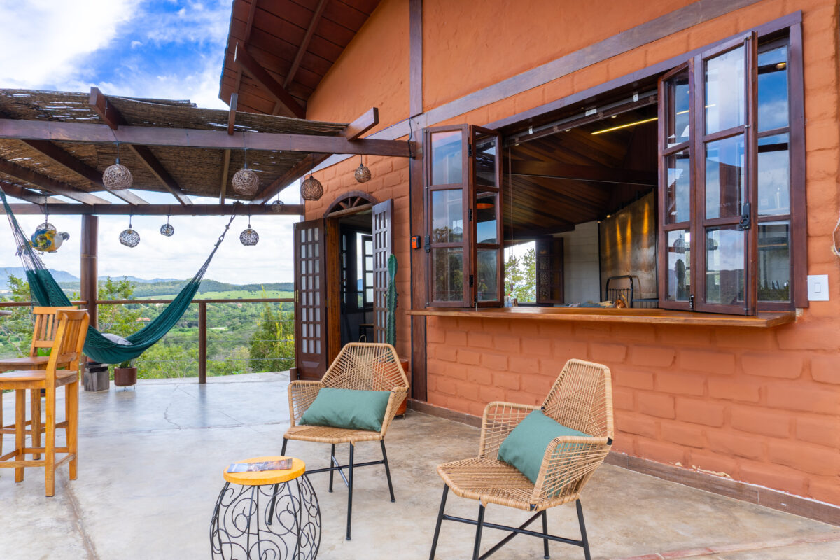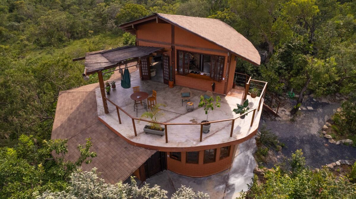 O Chalé Terra Vista do Cerrado é um refúgio rústico em meio ao cerrado preservado em Cavalcante, perfeito para quem busca contato com a natureza e tranquilidade. Com arquitetura orgânica e bioconstruída, a casa foi construída em adobe e taipa de pilão, utilizando janelas de reúso e materiais naturais que valorizam o conceito de sustentabilidade.