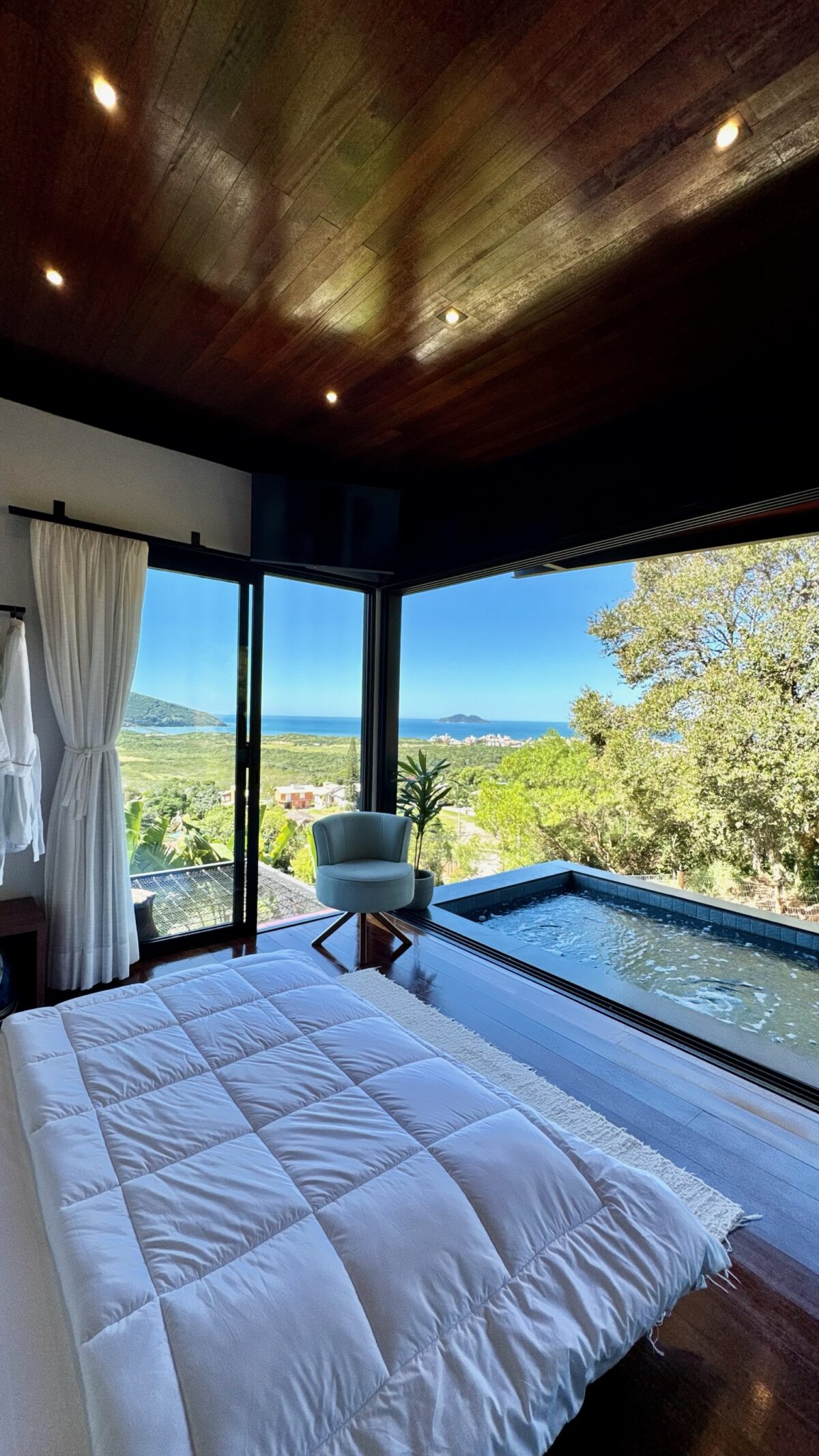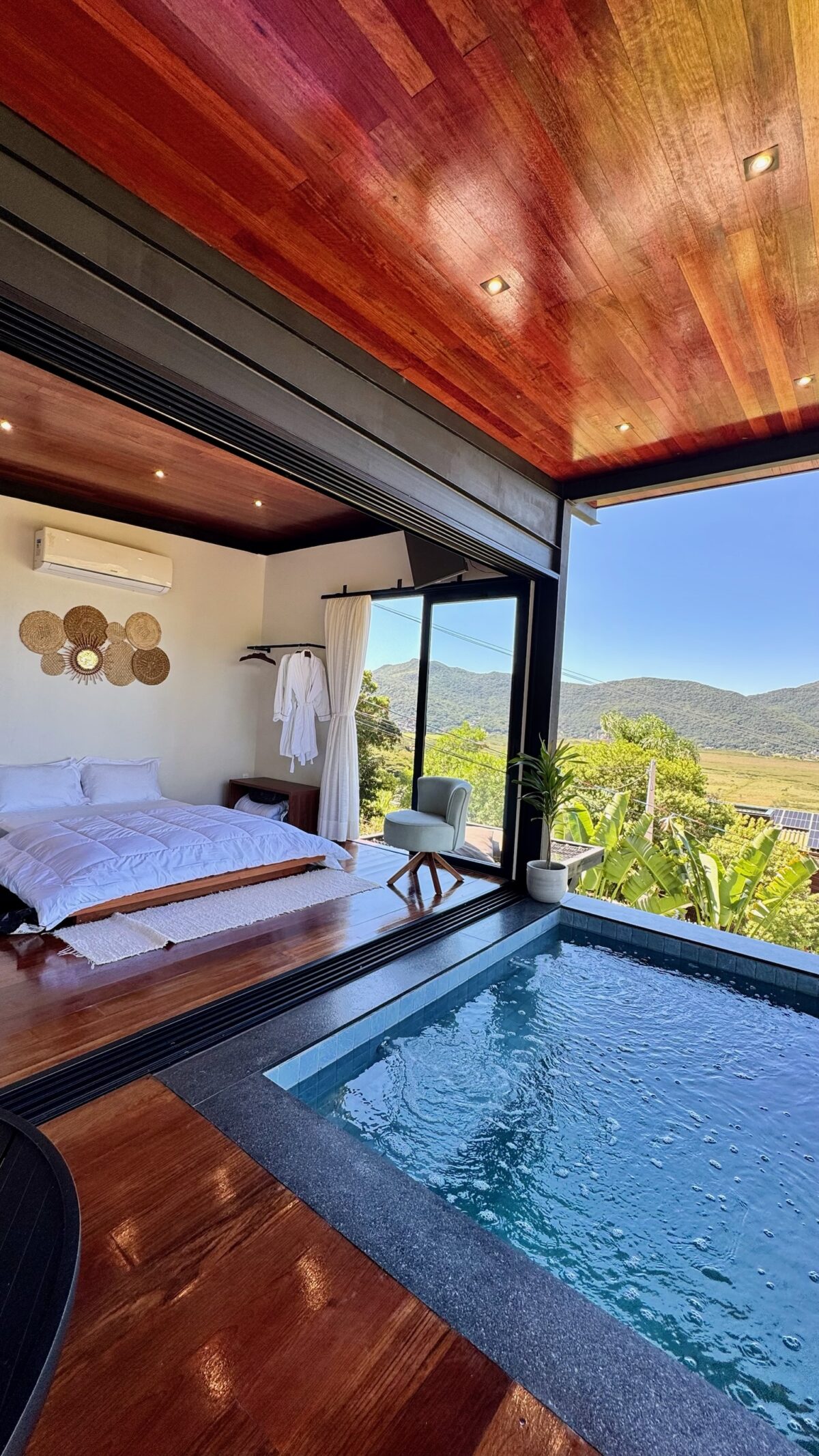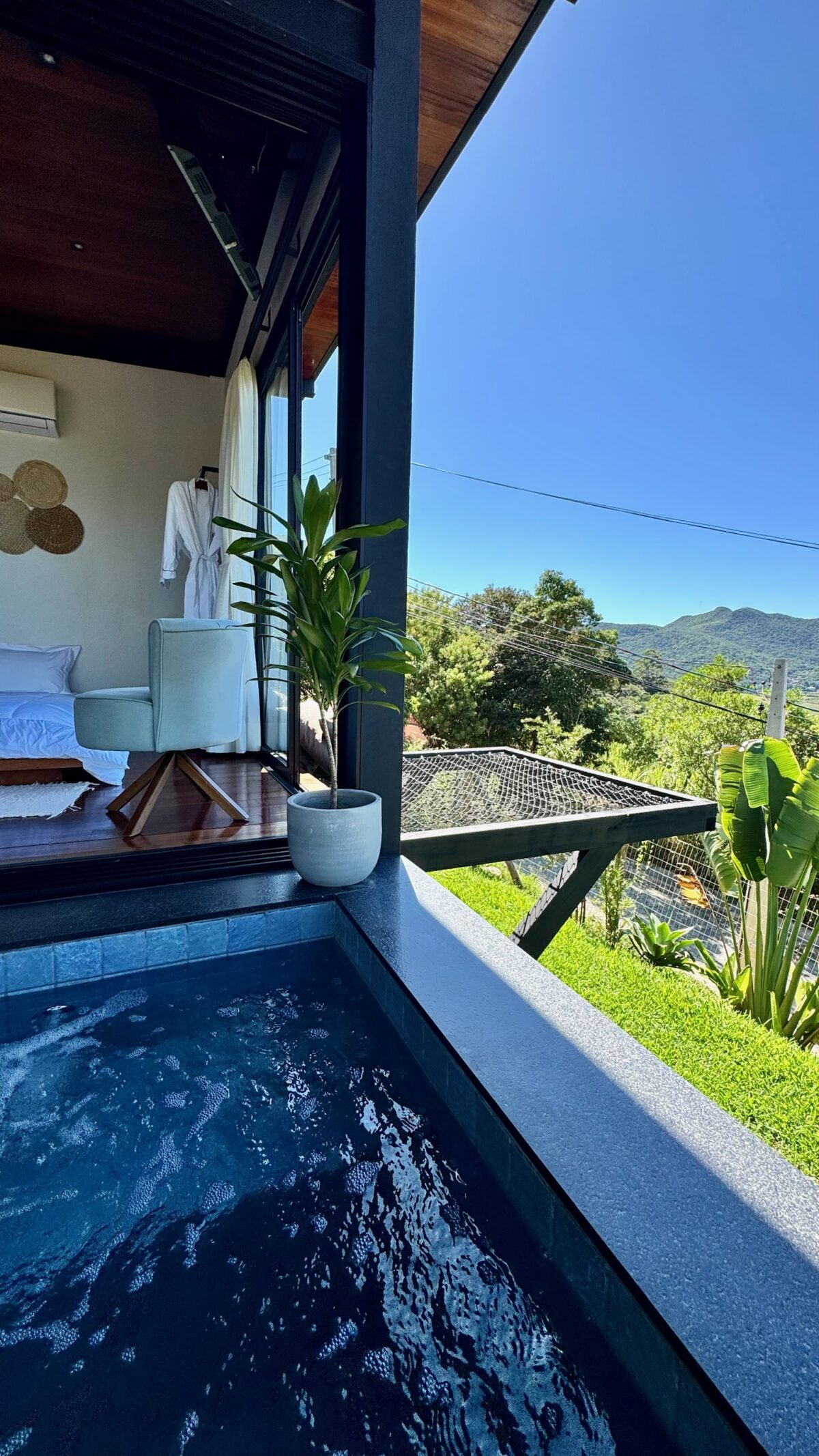 O Loft Sertão Recanto do Ilhéu é um refúgio imerso na natureza no sul de Florianópolis, perfeito para casais que buscam dias tranquilos e conexão a dois. Cercado pelo verde e com uma vista encantadora que mistura montanhas e mar, convidando a desacelerar em um cenário único.