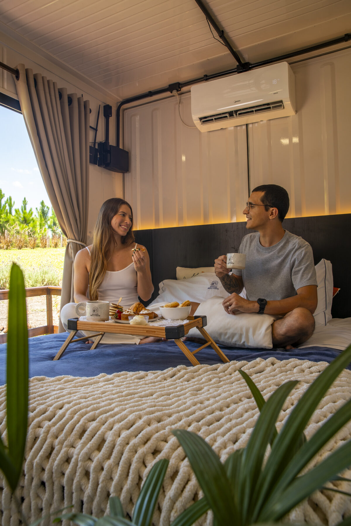 A Morada Container é um refúgio romântico e moderno, ideal para quem busca se reconectar com a natureza. Com um design inovador, combinando o charme do campo com o conforto e a praticidade de uma hospedagem contemporânea, proporcionando momentos únicos em meio à tranquilidade e ao verde da região. O interior da Morada Container é compacto, mas cuidadosamente projetado para aproveitar cada espaço com funcionalidade e estilo. A cozinha é equipada com tudo que você precisa para preparar suas refeições: frigobar, forno elétrico,