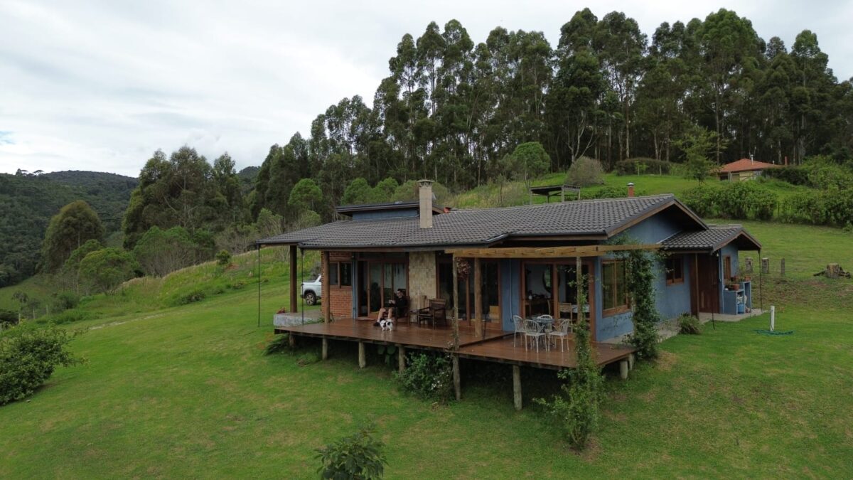 A área externa é um convite ao lazer e ao contato com a natureza. Um deck de madeira com mesa e cadeiras para refeições ao ar livre. Uma rede de balanço para relaxar enquanto aprecia a paisagem. O amplo gramado verde, cercado por árvores frutíferas, proporciona o espaço ideal para atividades ao ar livre, como caminhadas ou piqueniques.