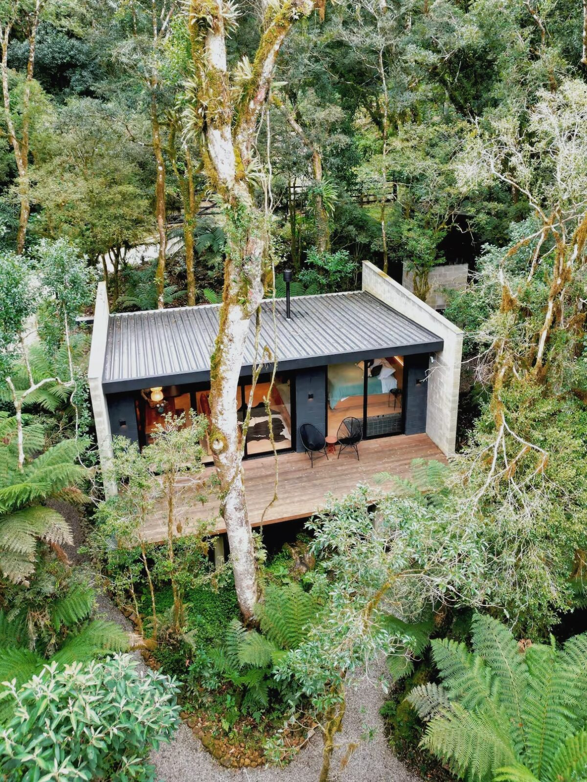 A Tiny House na Mata Atlântica é uma cabana de arquitetura moderna em São Francisco de Paula, na Serra Gaúcha. A hospedagem, no formato “Microcasa”, está cercada por natureza, garantindo total privacidade e contato com a Mata Atlântica, pássaros e vida silvestre. A cabana é um espaço para desconectar, curtir uma boa música, acender um fogo na lareira, desfrutar de uma boa gastronomia, relaxar na banheira inspirada nos Onsens japoneses ou beber um vinho na fogueira.